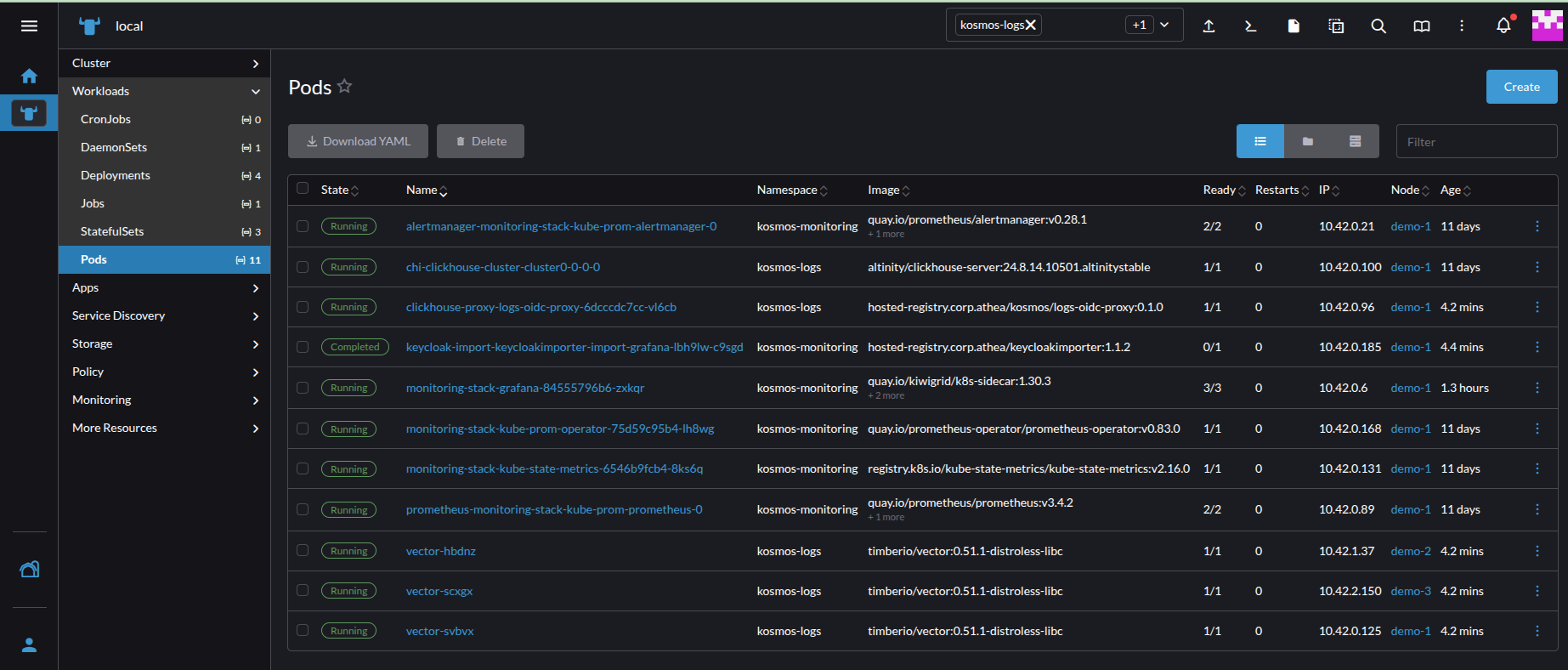 If you encounter a problem, you can view the vector logs (namespace: kosmos-logs).
